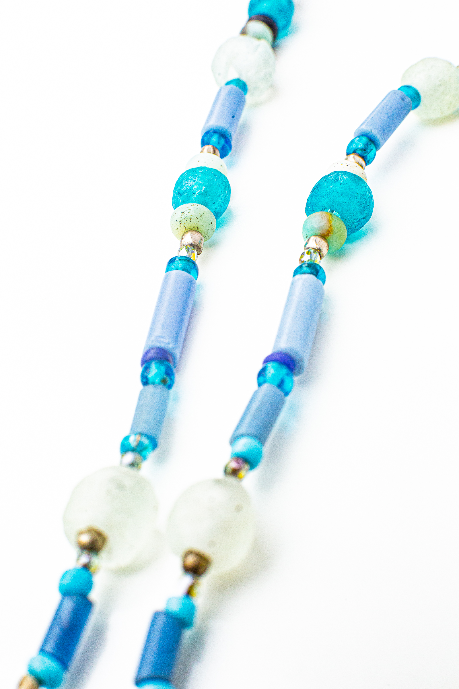 Each is one of a kind, and made by me. Many include re-purposed or vintage beads, beads and pendants from diverse cultures, made of natural materials, and some pendants hand-crafted by me.Each necklace comes in a green felt bag.