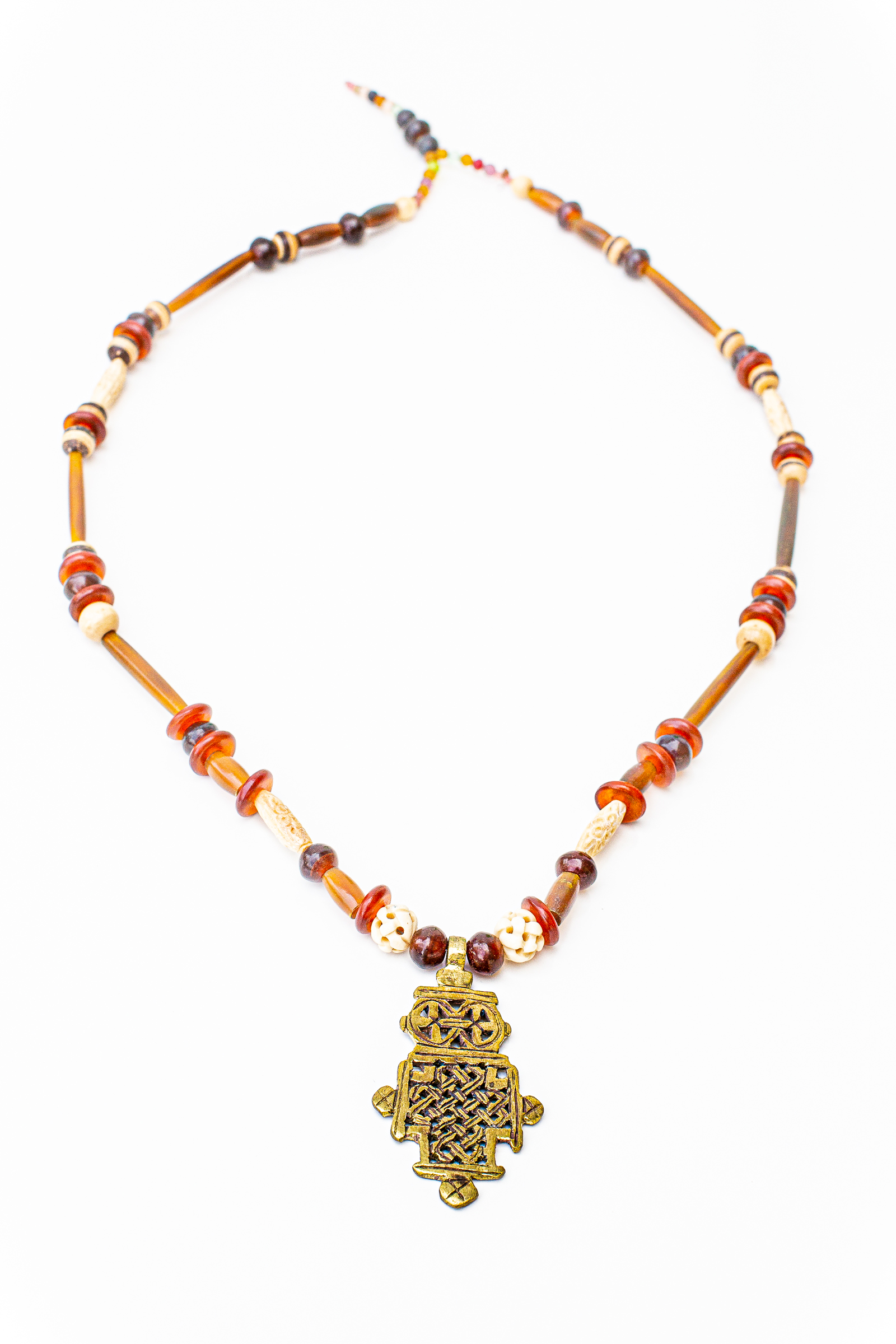 Be the first to review “Ethiopian Cross with carved beads Necklace”
