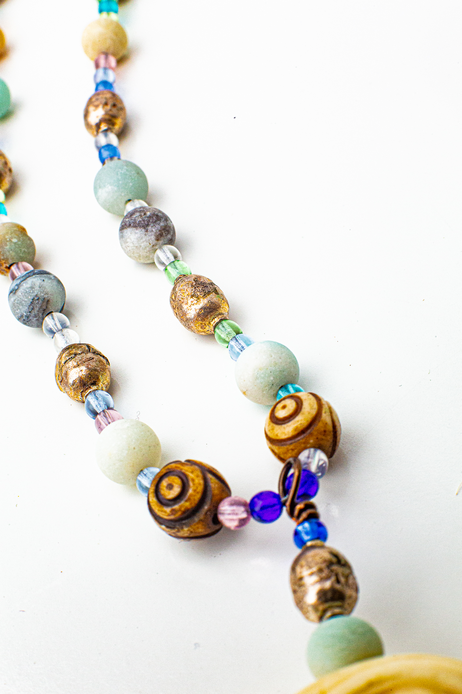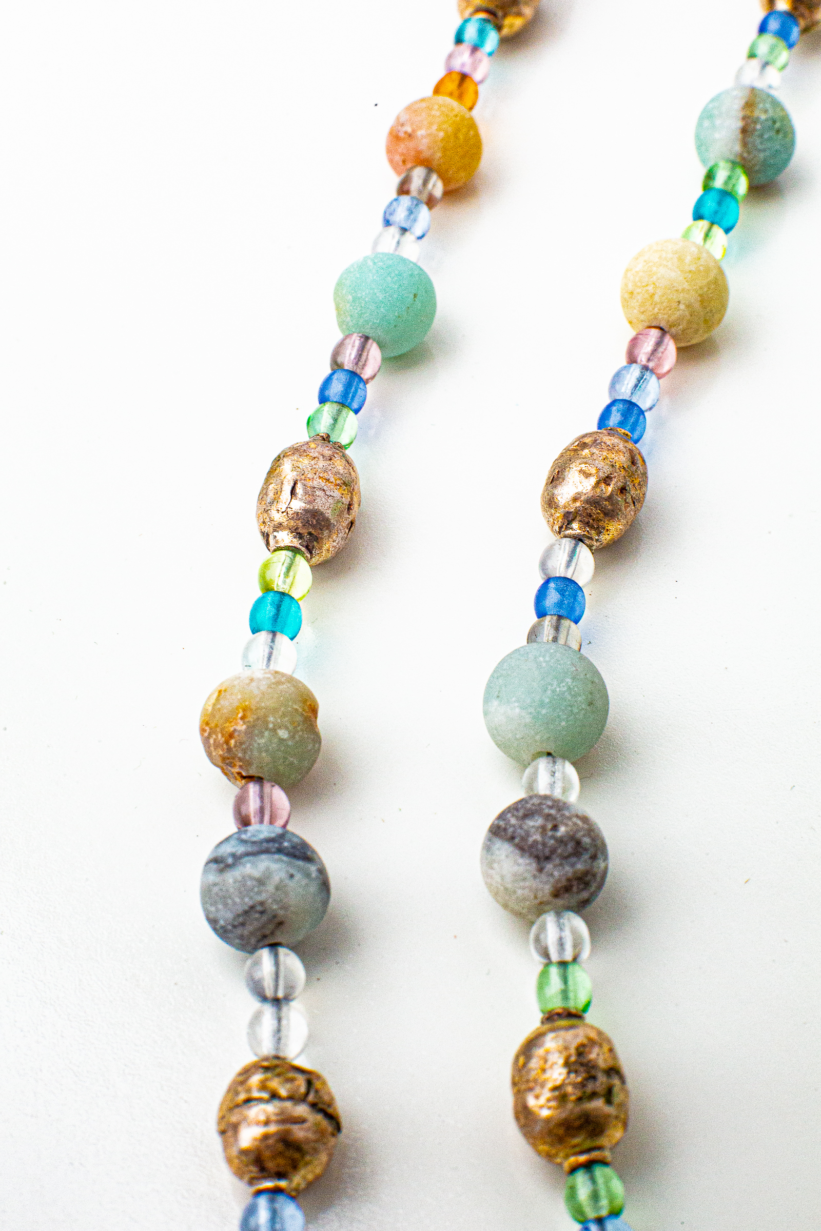Each is one of a kind, and made by me. Many include re-purposed or vintage beads, beads and pendants from diverse cultures, made of natural materials, and some pendants hand-crafted by me.